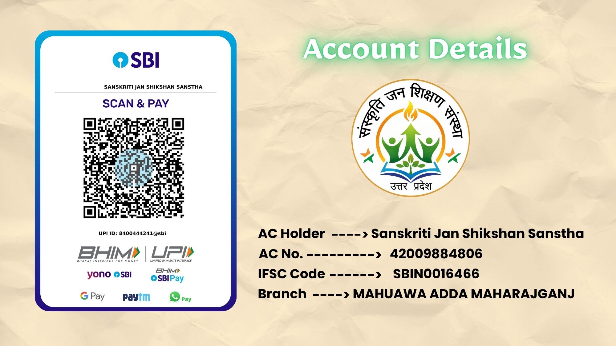 SANSKRITI JAN SHIKSHAN SANSTHA is a not for profit organisation is working towards